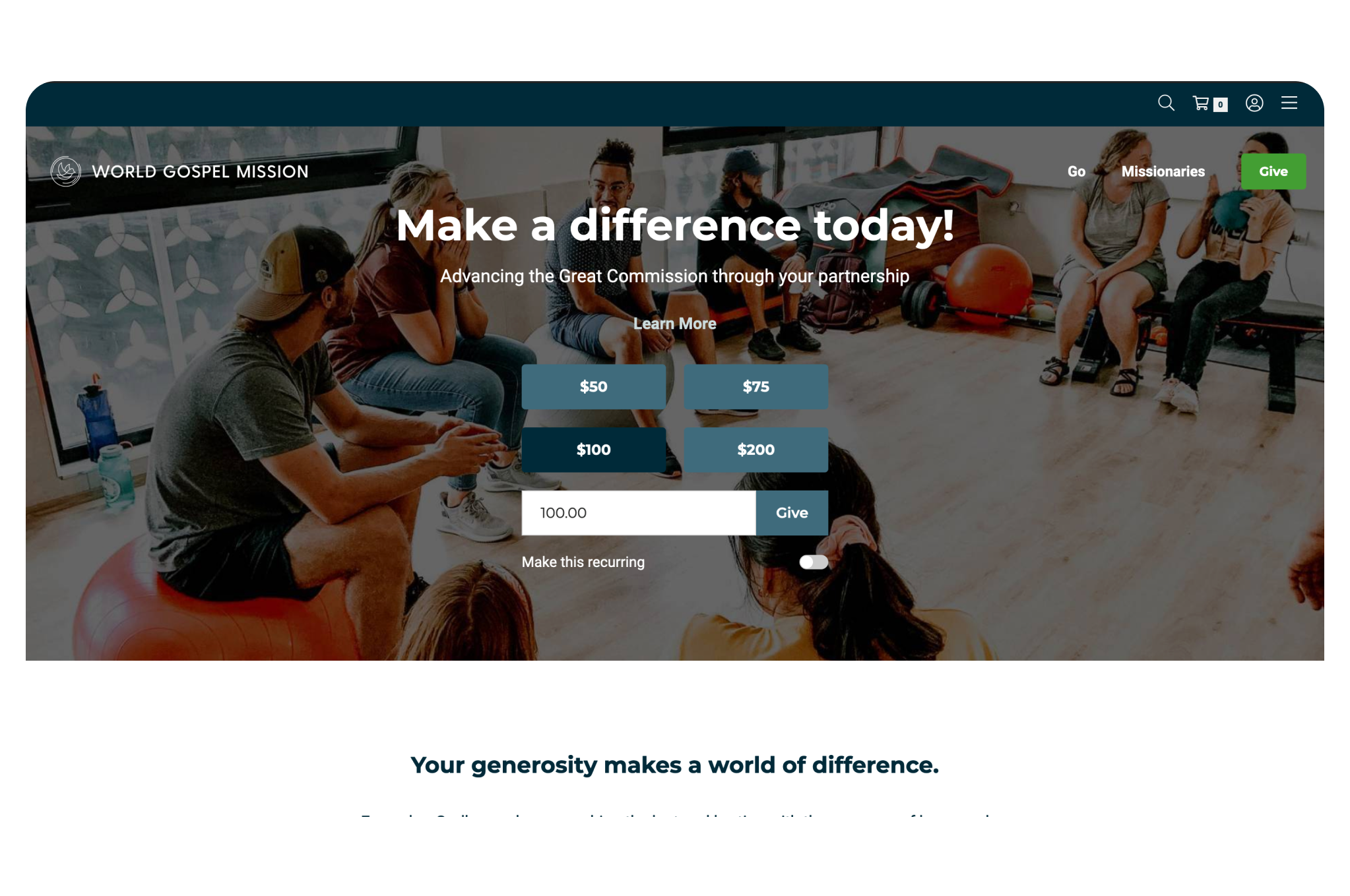 World Gospel Mission's website refresh brought about a sleek new design and complete functionality. Featuring a custom giving popup that allows quick and easy access to search for a missionary or give to the global impact fund within seconds.